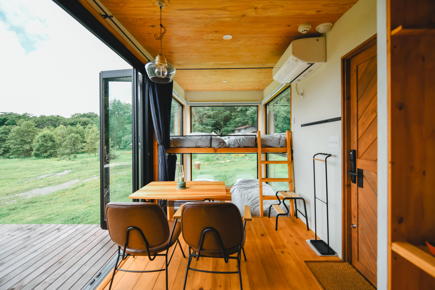 八ヶ岳に位置する、移動可能なトレーラーハウス型宿泊施設「タイニーホテル THE NOMAD | ザ ノマド」。基礎工事を必要としない「トレーラーハウス(車両)」を活用することで、自然への負荷を最小限に留め、ミニマルでサステナブルなステイができると共に、これまでのリゾートホテルでは実現できなかった、大自然の醍醐味を味わえる開放的なデザインにより、特別な宿泊体験が可能になりました。