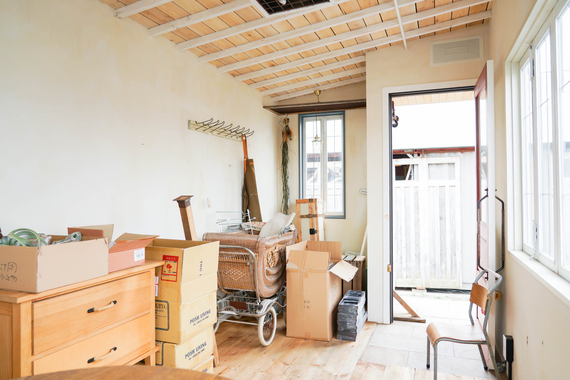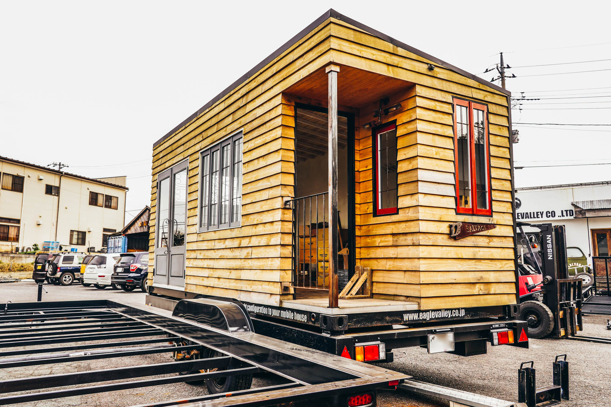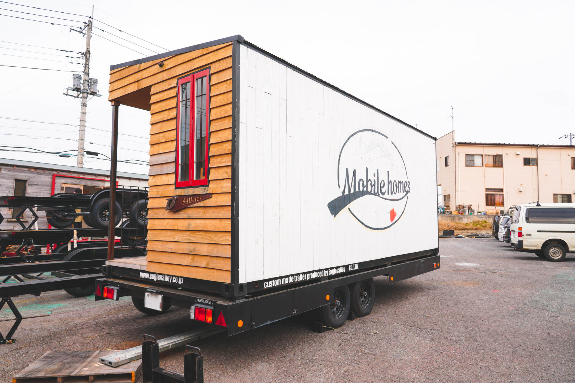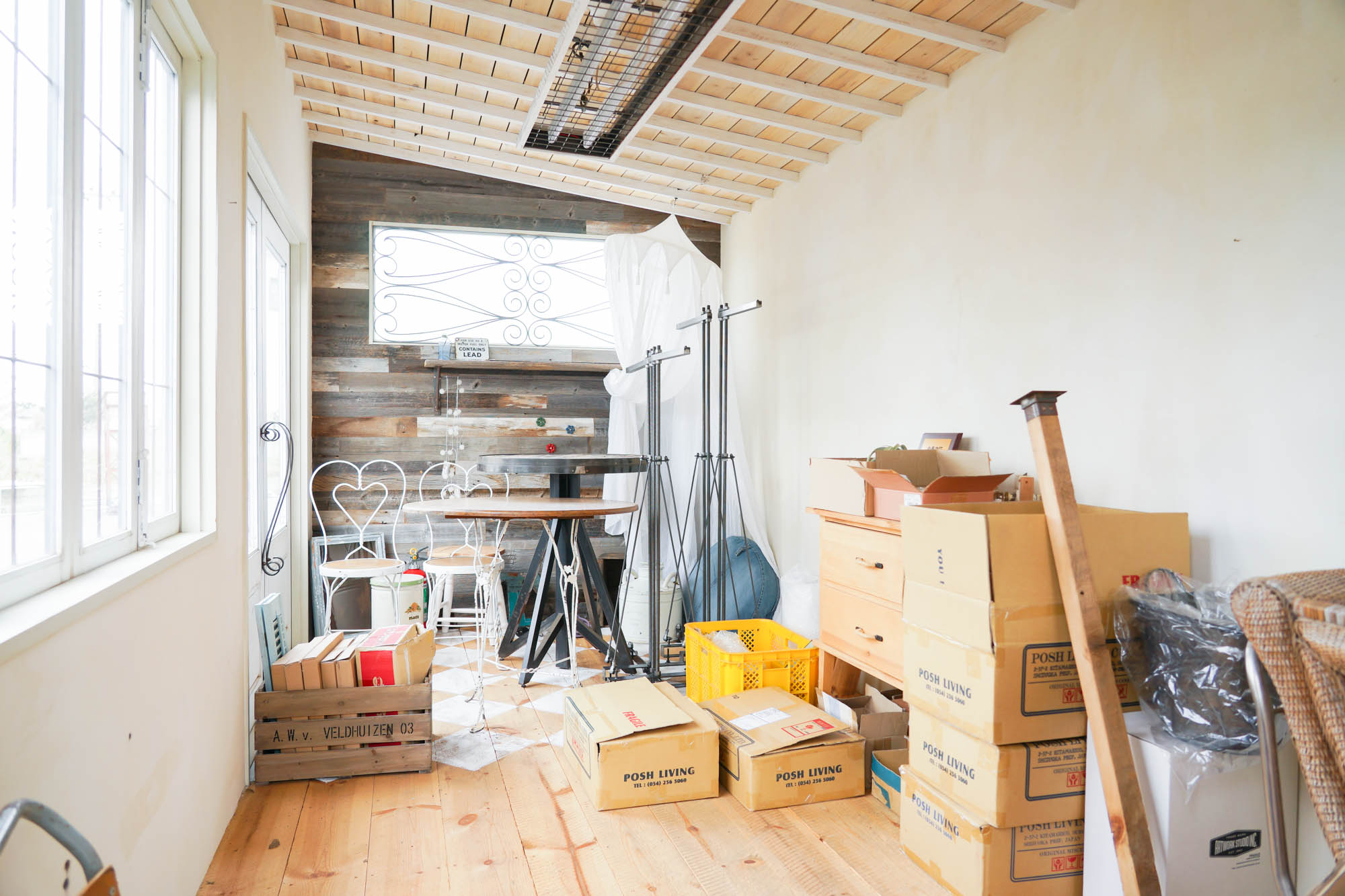 内外装共に無垢材&古材を使用し、窓やドアなどのパーツまで全て、ハンドメイドによる自社製カスタムメイド。内部はフォトスタジオとして利用できる環境に仕上げました。