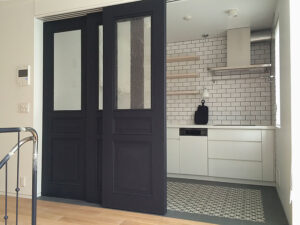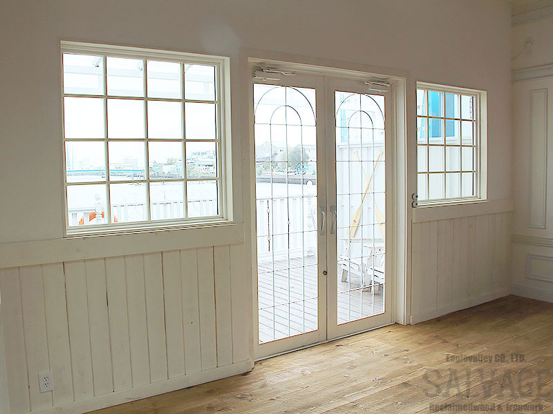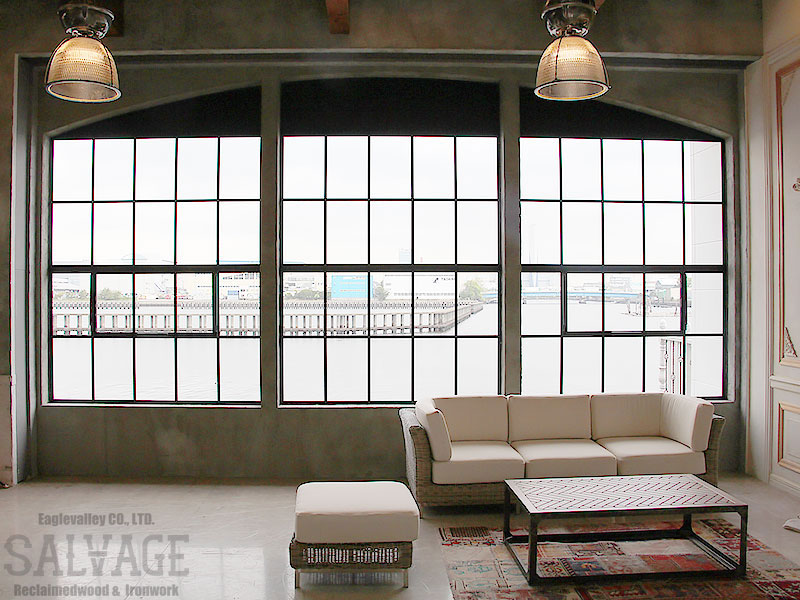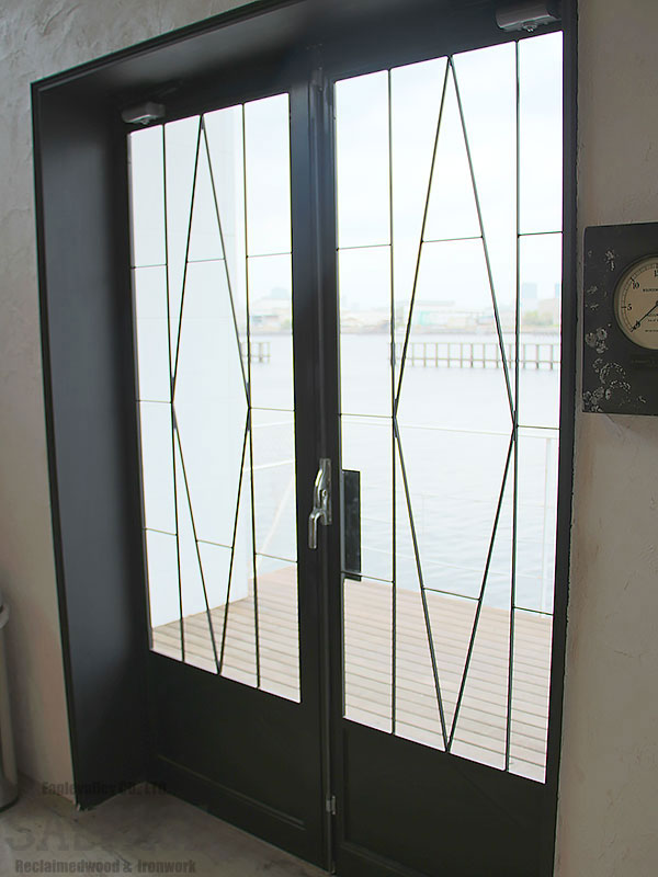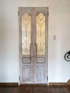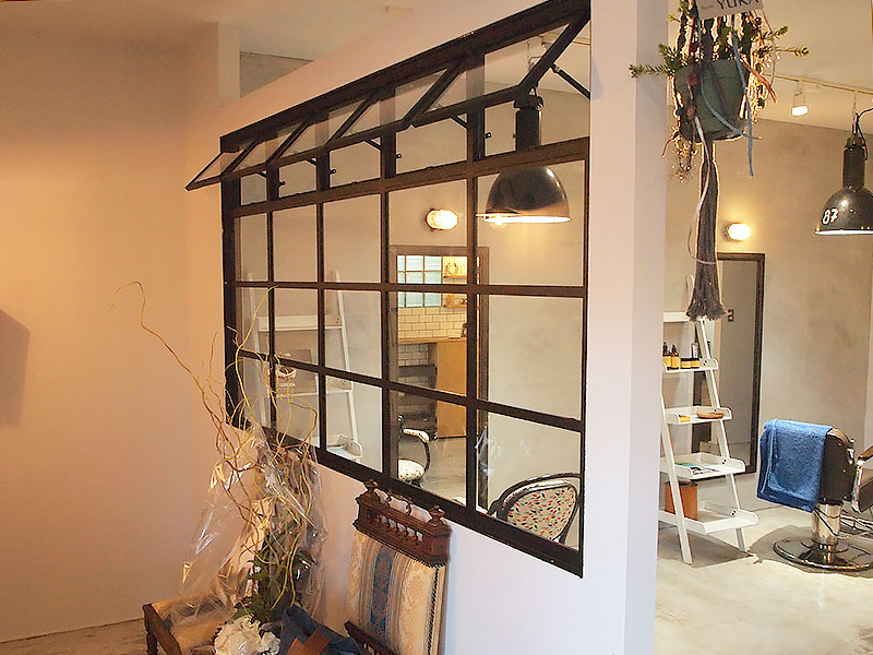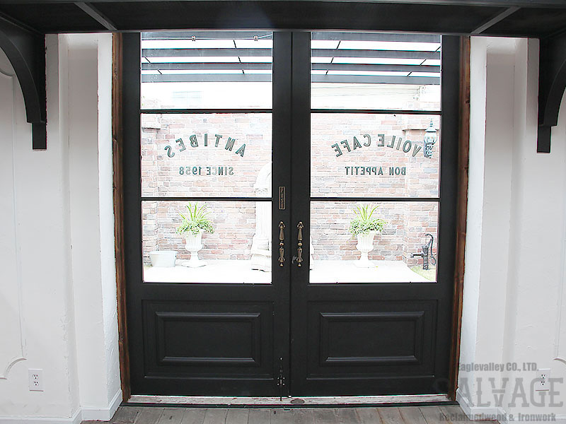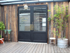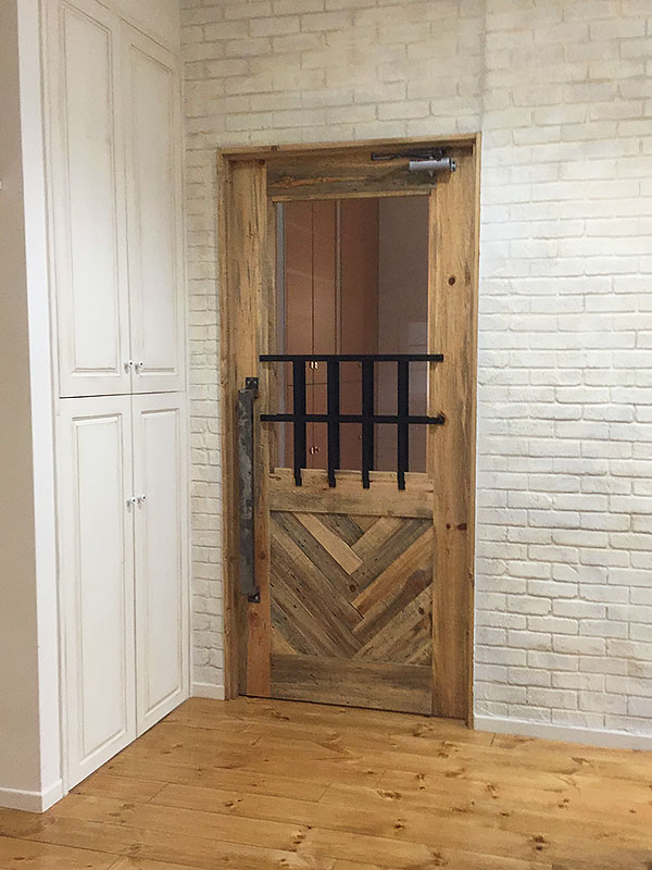 古材やアイアンを組み合わせ、空間の顔となるドアと窓を完全オーダーメイドで製作。