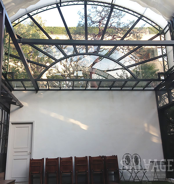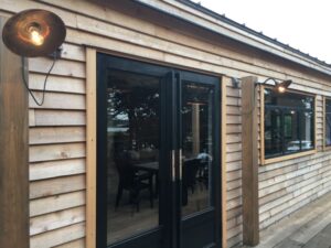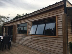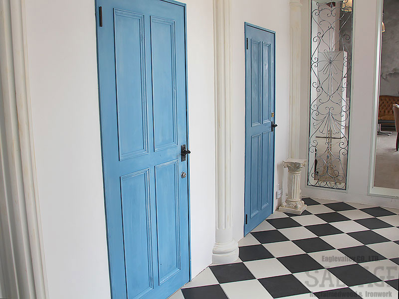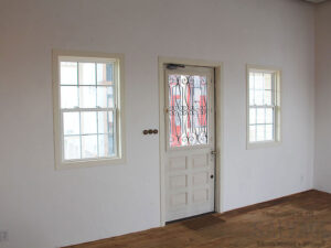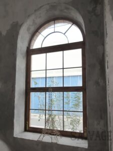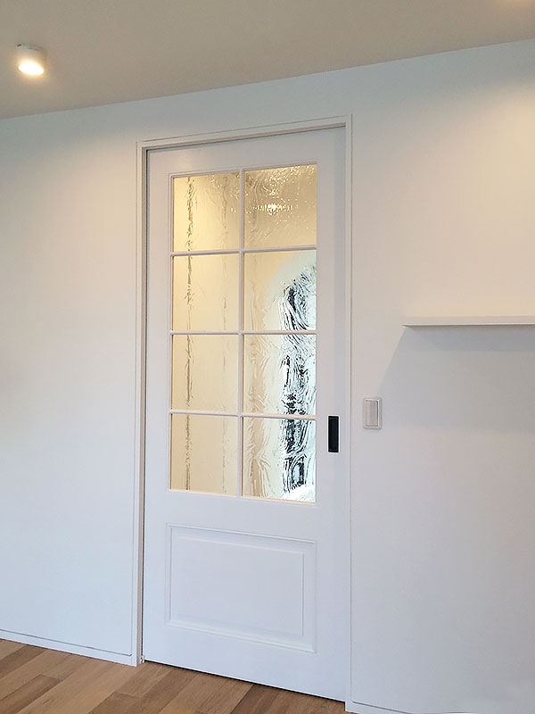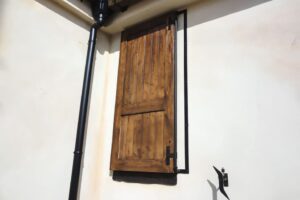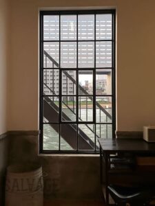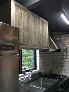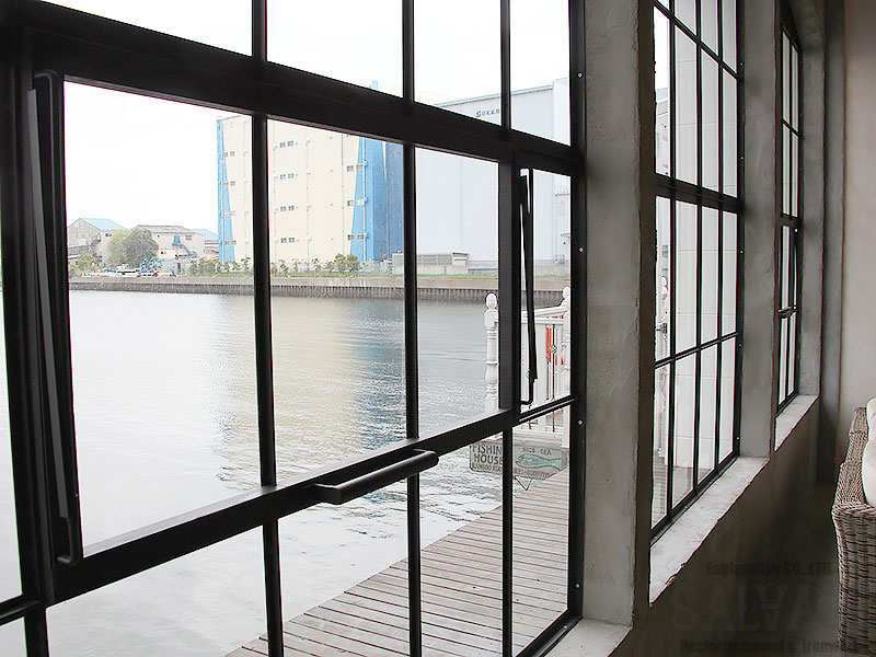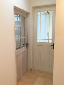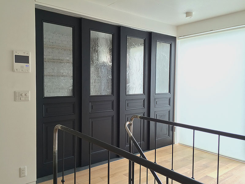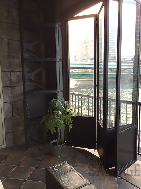 古材やアイアンを組み合わせ、空間の顔となるドアと窓を完全オーダーメイドで製作。