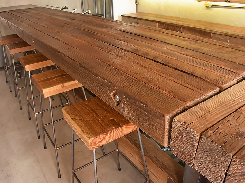 北米で自社買付した、一点ものの古材や建材。空間の歴史と深みを創り出す素材。
